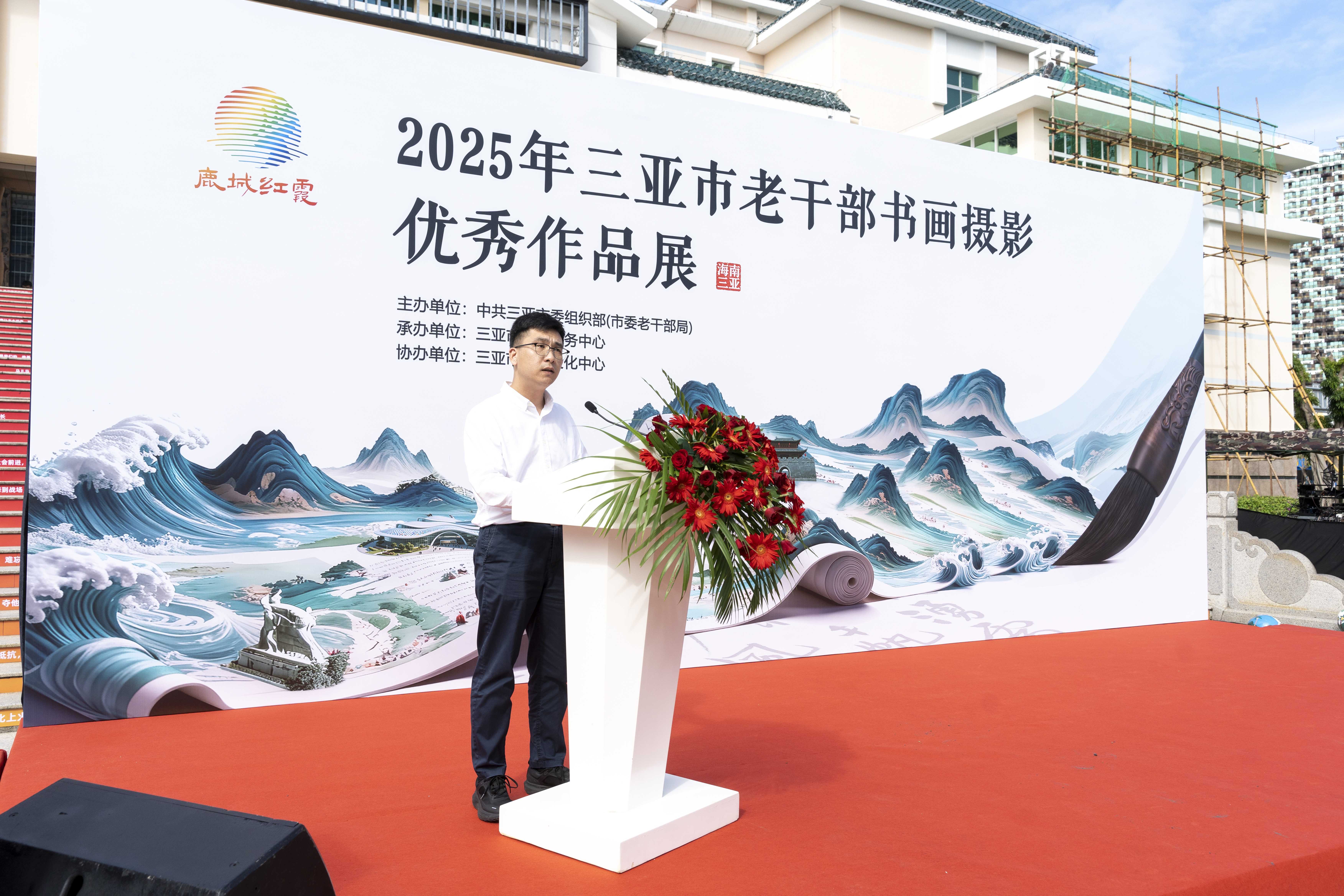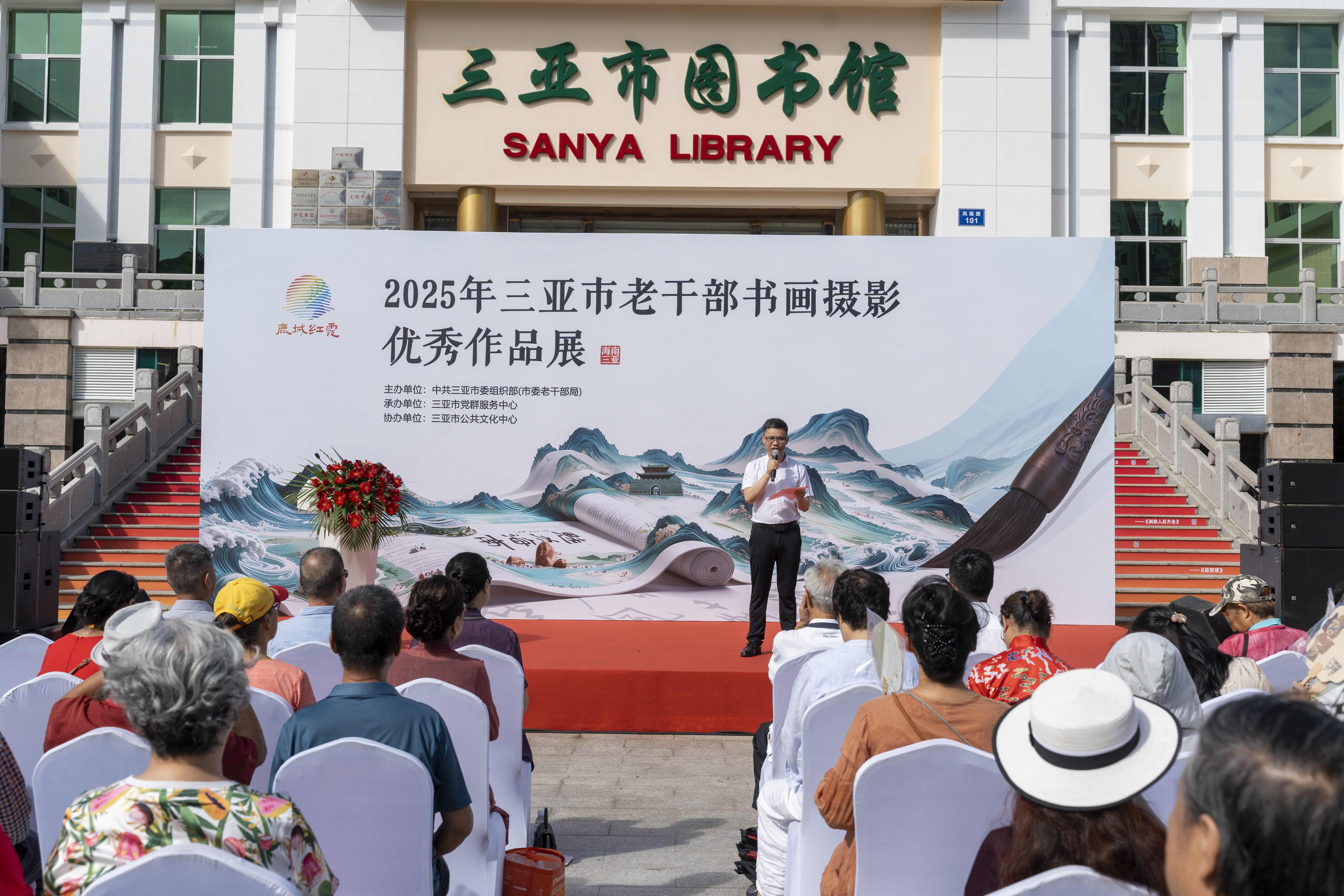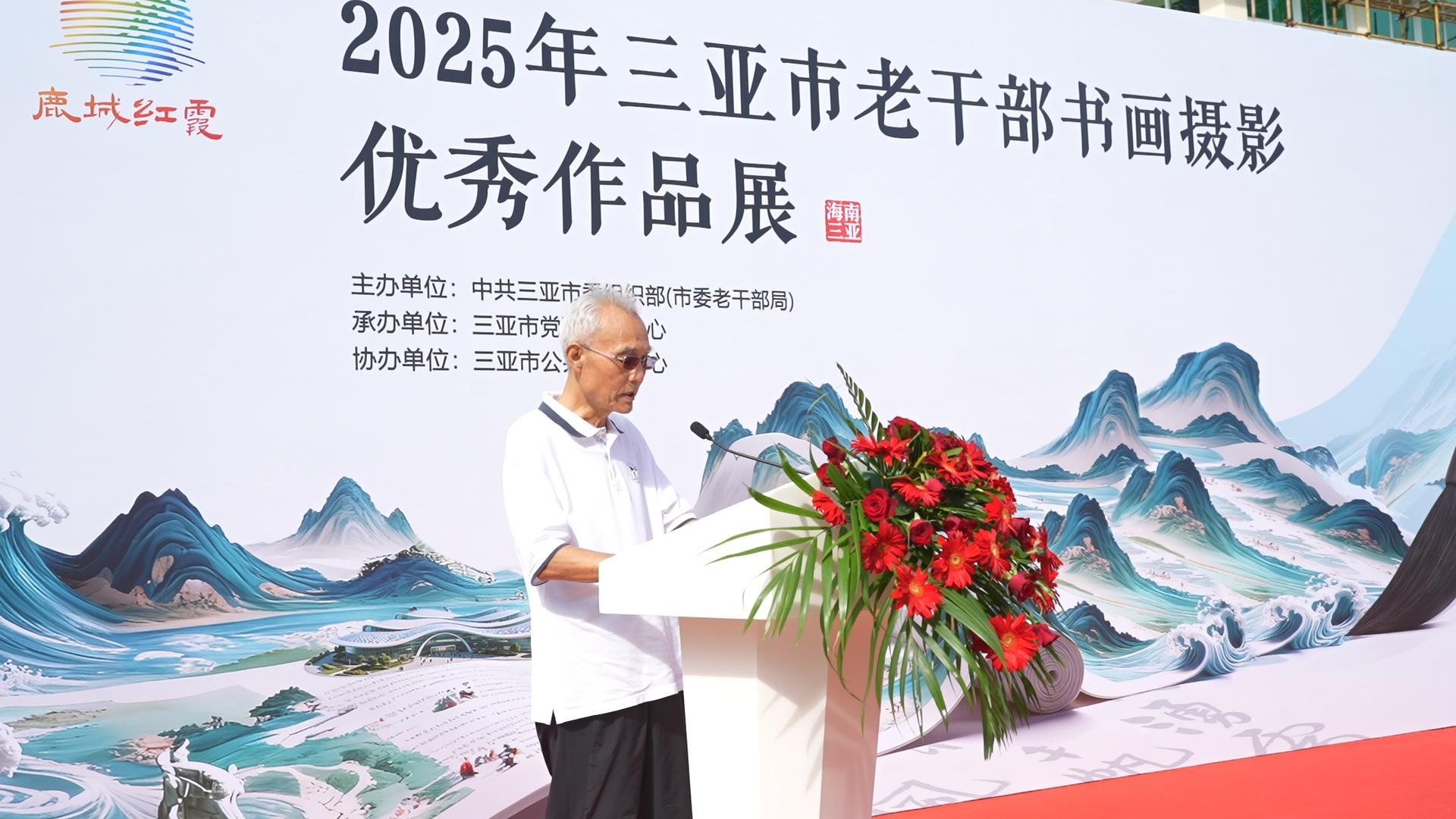 为抒发全市老干部对党和国家的炽热情怀,引导广大老干部书画摄影爱好者用艺术作品宣传新中国成立以来党和国家取得的辉煌成就,纪念中国人民抗日战争暨世界反法西斯战争胜利80周年,进一步坚定文化自信,11月6日上午,由中共三亚市委组织部(市委老干部局)主办,三亚市党群服务中心承办,三亚市公共文化中心协办的2025年三亚市老干部书画摄影优秀作品展,在三亚市图书馆开幕。市政协原主席赵普选、海南省人大原专职常委张萍等60余名老干部受邀到场参加开幕仪式。