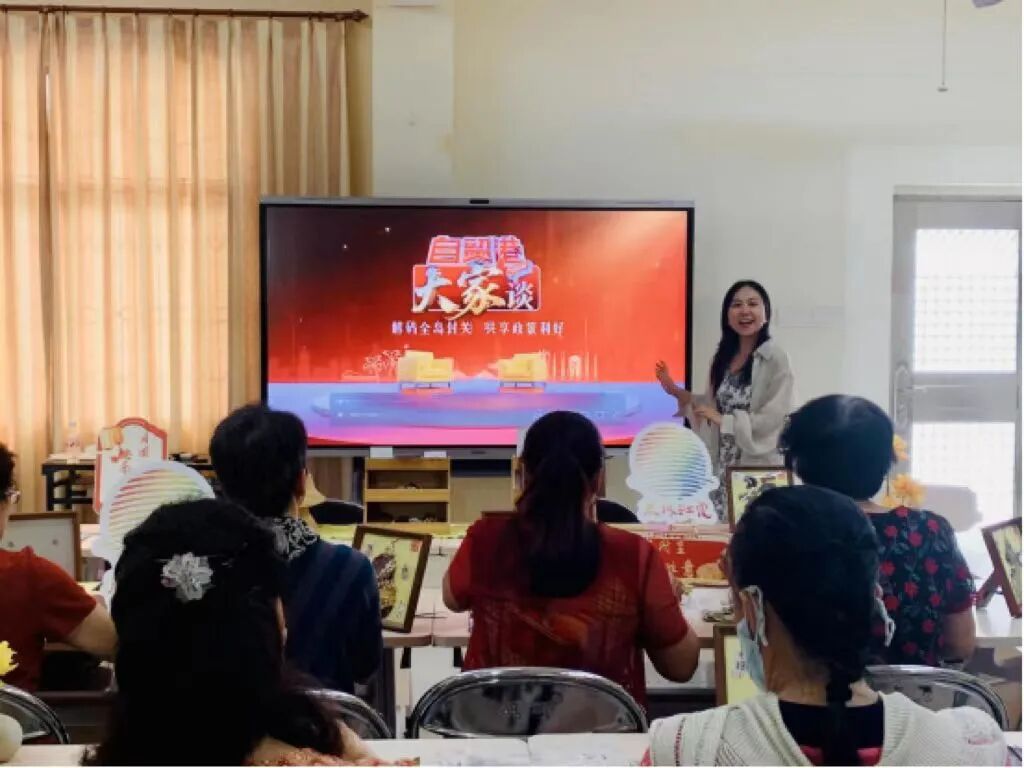 2025年是海南自贸港封关运作、扩大开放之年,为了加强“大思政”体系建设,让老同志们进一步了解和掌握海南自贸港封关动态和优惠政策。活动开始前,现场播放自贸港封关政策专题短片《自贸港大家谈》,深度解码全岛封关政策,解读如何依托自贸港独特优势探索数字经济发展新模式。短片观看完毕后,工作人员同步开展实操引导:一方面协助老同志们关注“海南自由贸易港”官方微信公众号,链接政策获取的官方渠道;另一方面通过手把手演示、耐心答疑,帮助大家熟练掌握线上收听、收看自贸港封关政策权威宣讲与解读的操作方法,确保老同志随时关注封关动态,真正实现政策学习“不掉队”。