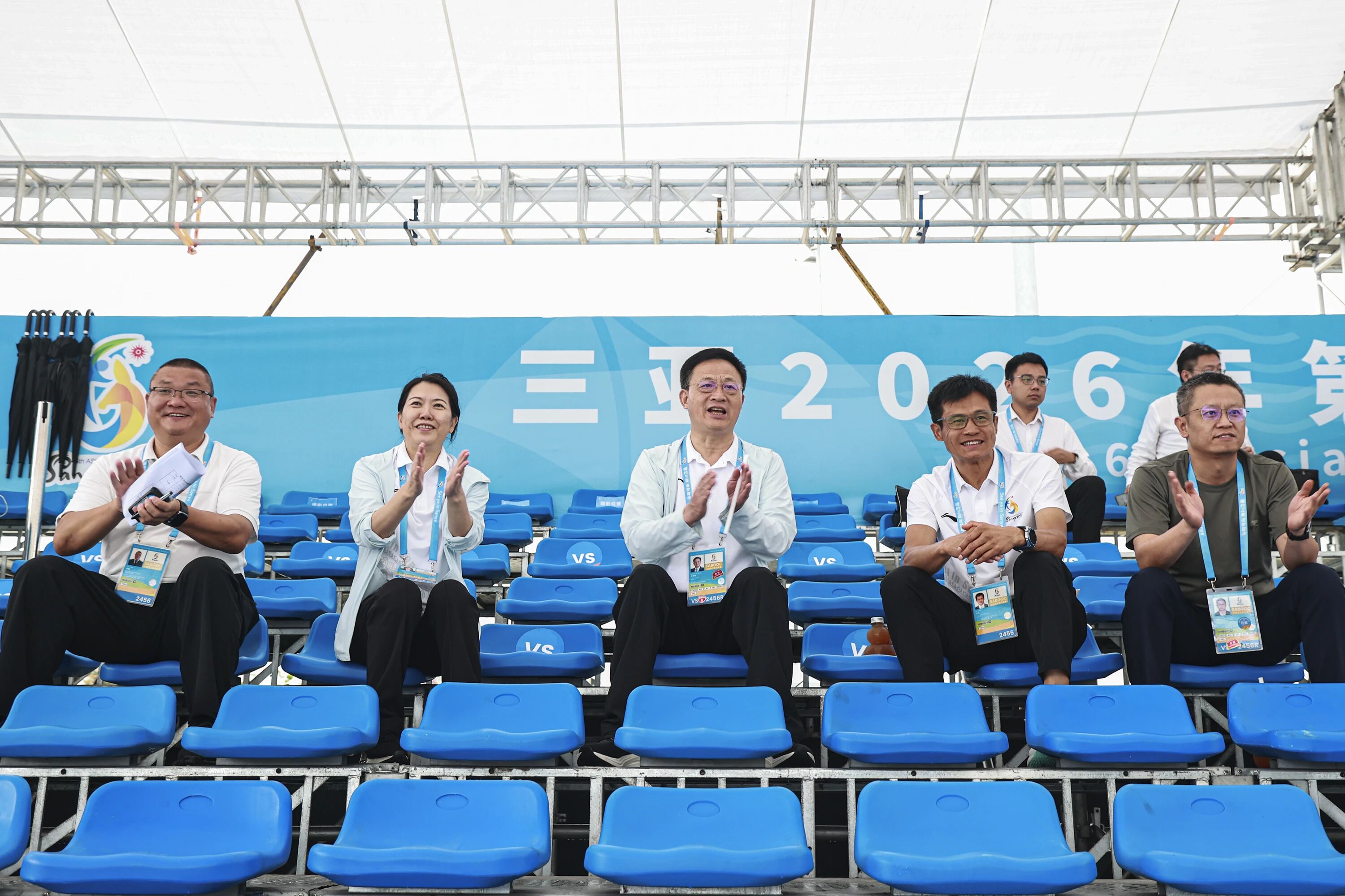 当天上午,王祺扬深入御海路竞赛场馆群,了解沙滩摔跤赛事志愿服务开展情况。其间,王祺扬与志愿者交流,询问服务内容、后勤保障及作息安排。他指出,本届亚沙会汇聚亚洲45个国家和地区的运动员,志愿者是赛事运行不可或缺的重要力量,使命光荣、责任重大。希望大家珍惜这次难得的国际赛事服务机会,继续保持昂扬状态,用热情周到的服务展现新时代大学生志愿者的责任担当和青春风采。